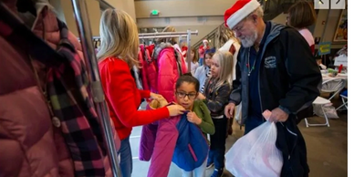 Wenatchee Downtown Kiwanis Club Member held their Annual Christmas party at Pybus and it was a resounding success. Third Grade Students from the Wenatchee Area enjoyed lunch, a new coat, a new stocking cap and prizes