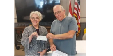 Photo Left-Bill Dearing (L), Wenatchee Downtown Kiwanis Member presents $500 check to Erica Mashe, Executive Director of Brave Warrior Project 3/18/2025 for March's donation during Wenatchee Downtown Kiwanis "Year of Giving."