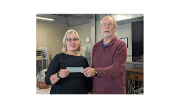 Photo - Tony Wright (L) -Kiwanis Board Member presents $500 check to Nancy Grette (R) from Alatheia Riding Center from Wenatchee Downtown Kiwanis "Year of Giving."